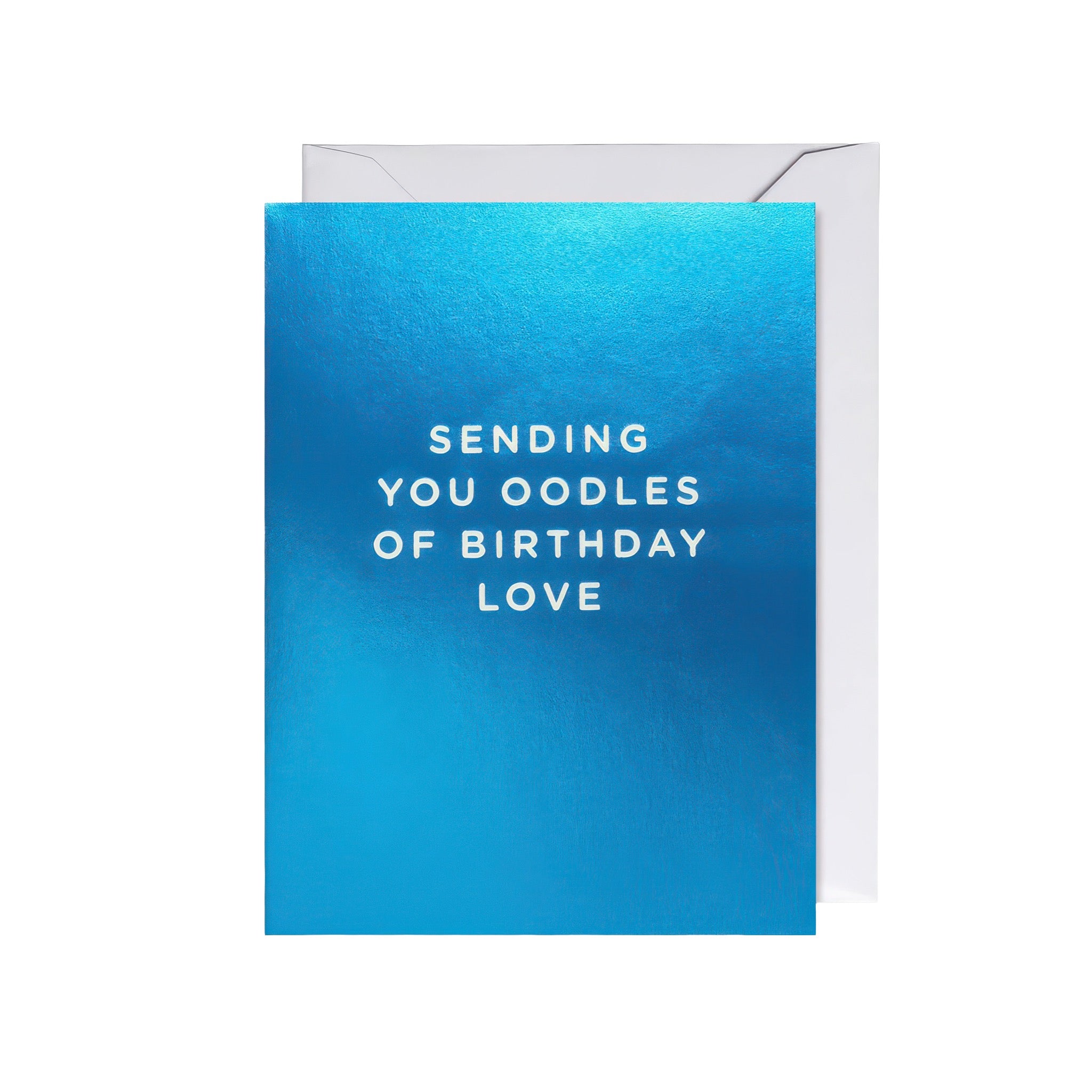 A little card with lots of love. This mini birthday card sends oodles of birthday wishes in a bold blue design, printed on accredited sustainable and recycled papers with vegetable based inks and blank inside for your note.