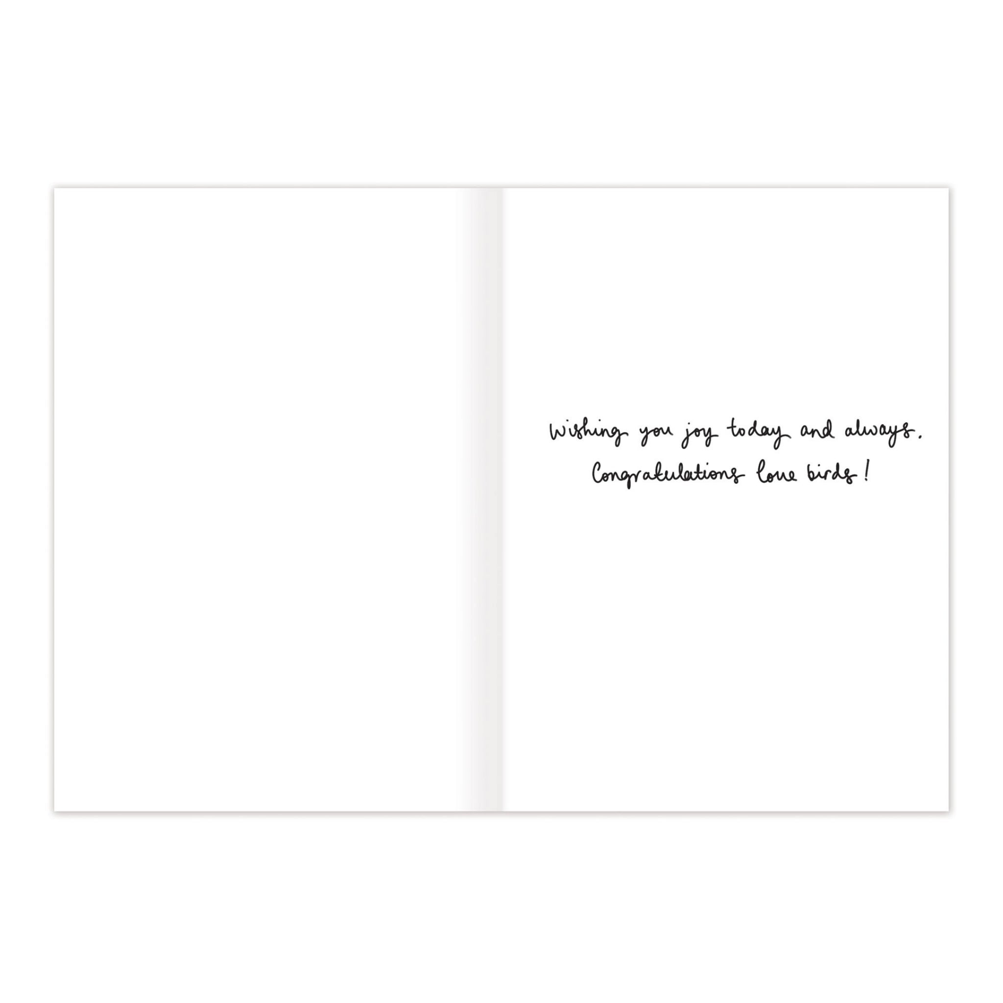 - Inside message: Wishing you joy today and always. Congratulations, love birds!