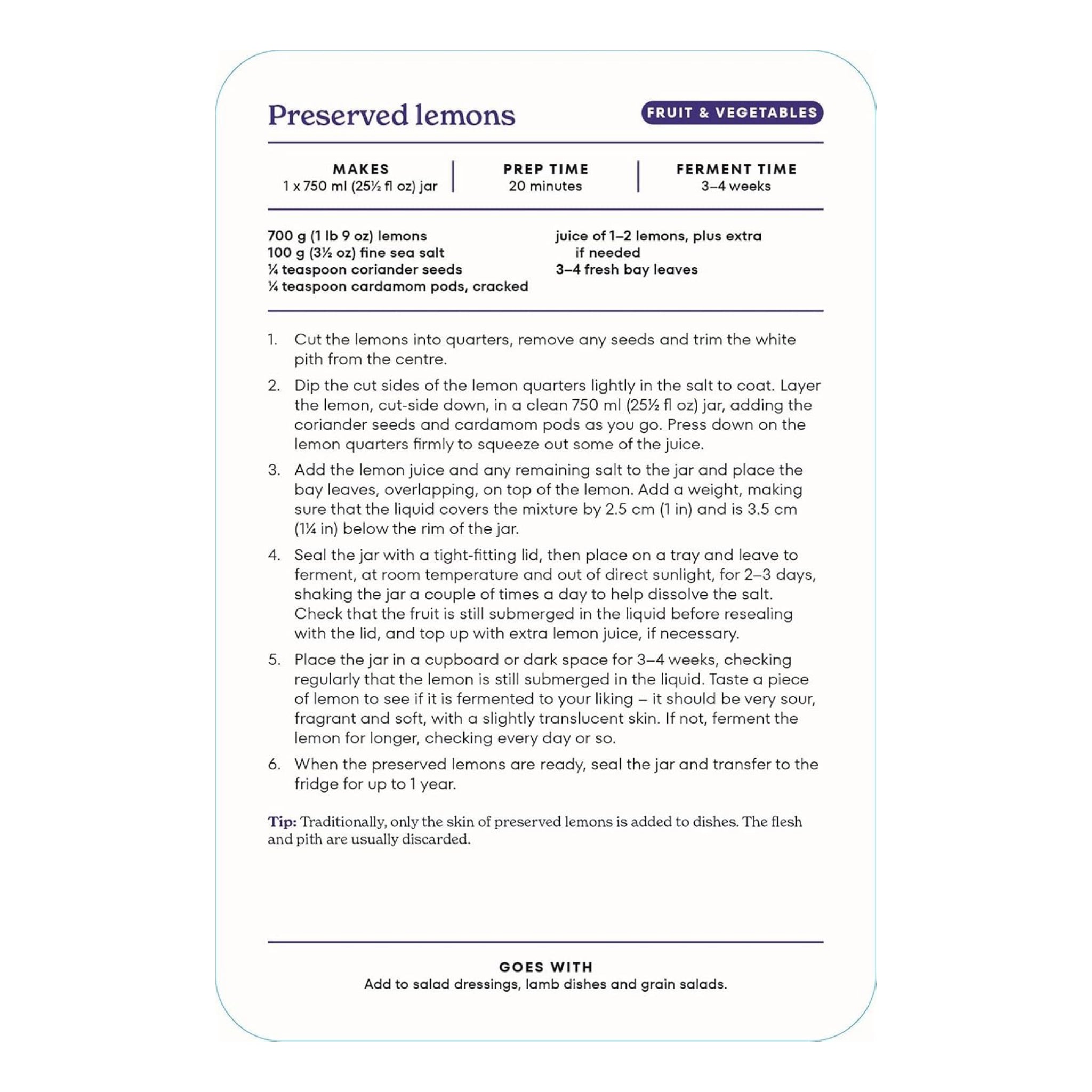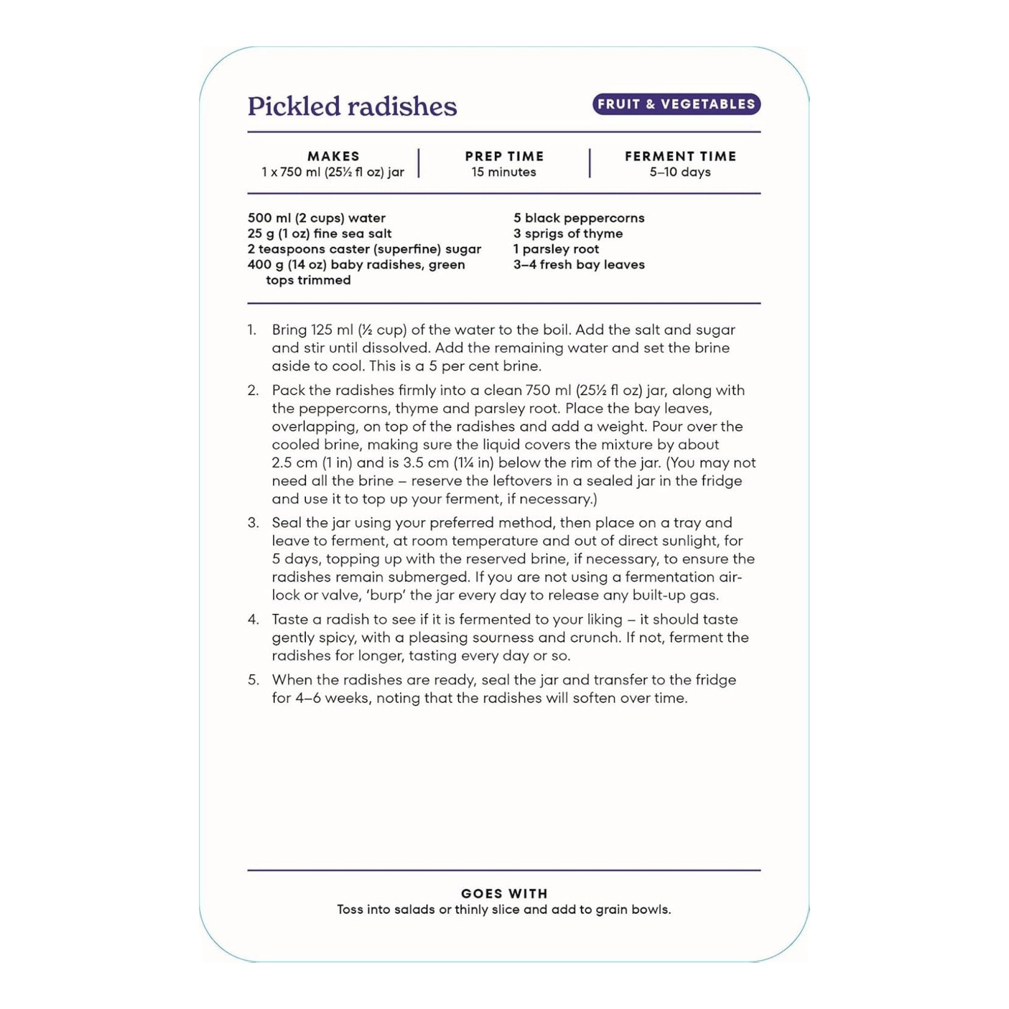 A handy recipe deck packed with 50 fermentation recipes from around the world, from kimchi and kombucha to sourdough and yogurt. A fun way to explore homemade ferments.