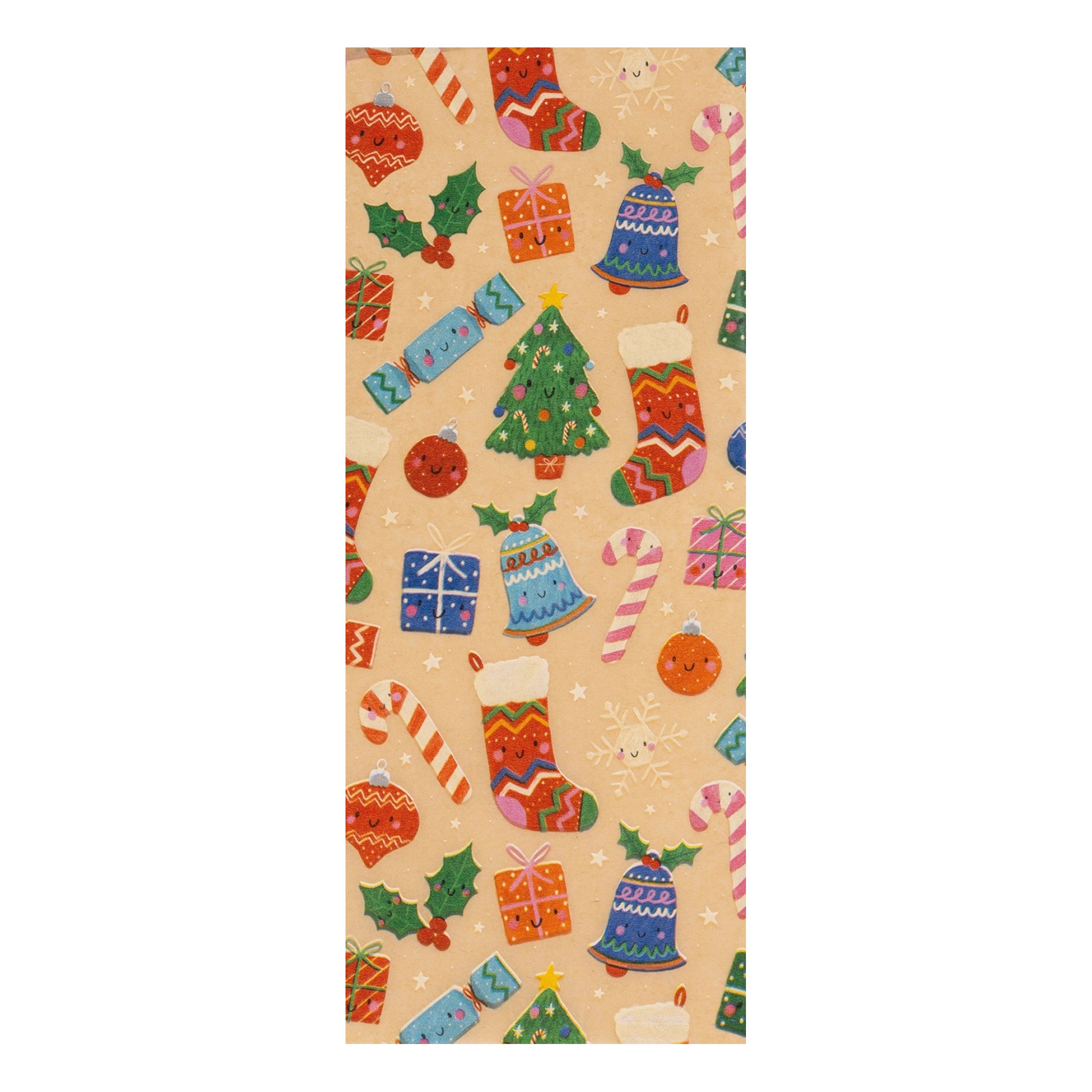 Wrap gifts with tissue kraft whimsical Christmas for a festive touch. These holiday tissue paper sheets bring charm, colour and playful cheer to wrapping or crafts