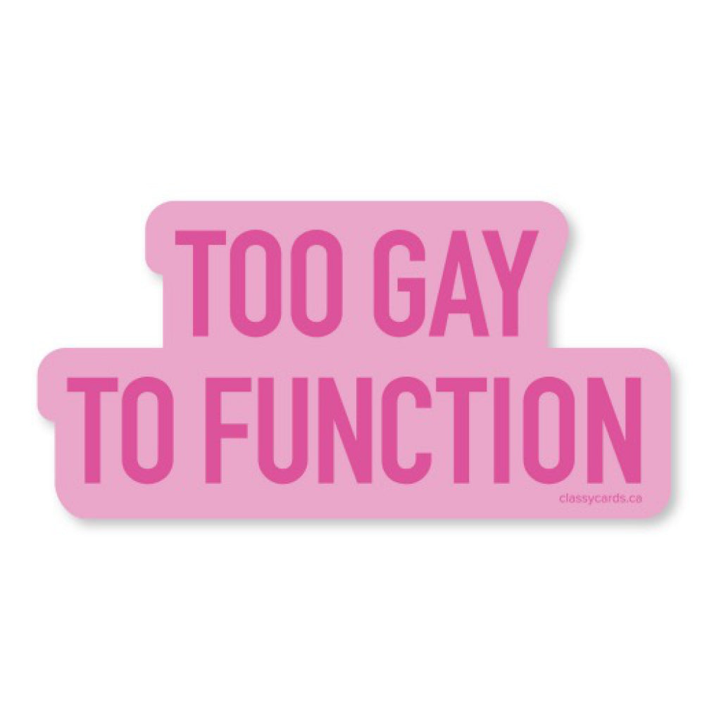 For the days when the vibe is too gay to function. This waterproof vinyl sticker is ready for laptops, water bottles, and anywhere that needs loud pink energy.