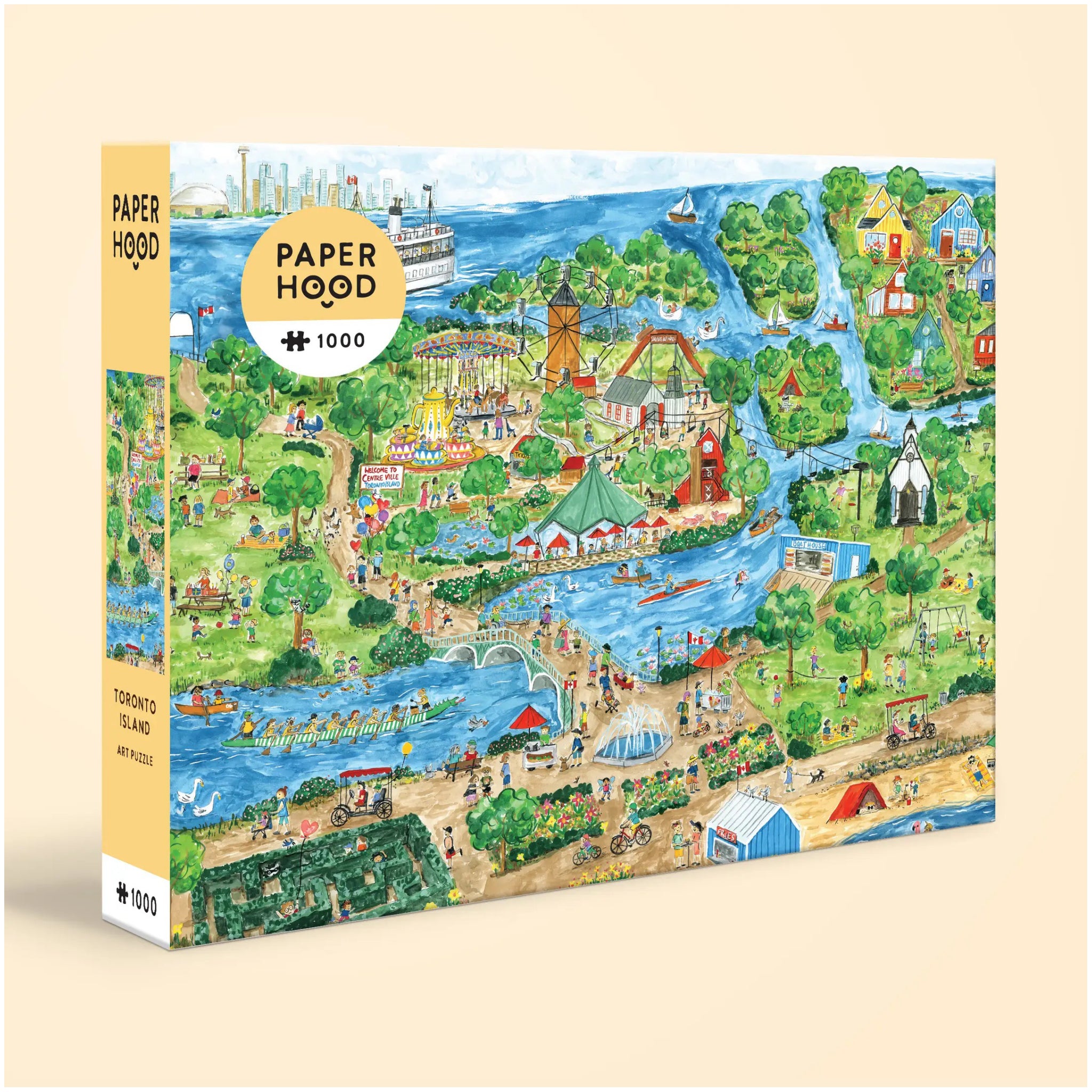 This 1000 piece Toronto Island puzzle captures the ferry ride to a sun filled escape just off the city skyline. From Centreville rides to beaches, picnics, canoeing and disc golf, it celebrates summer fun for all ages, with a few curious raccoons along the way.
