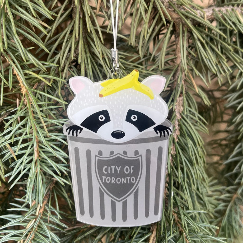 Trash Panda Raccoon Ornament with cheeky Toronto attitude. A playful raccoon holiday ornament for city lovers and festive trees with humour.