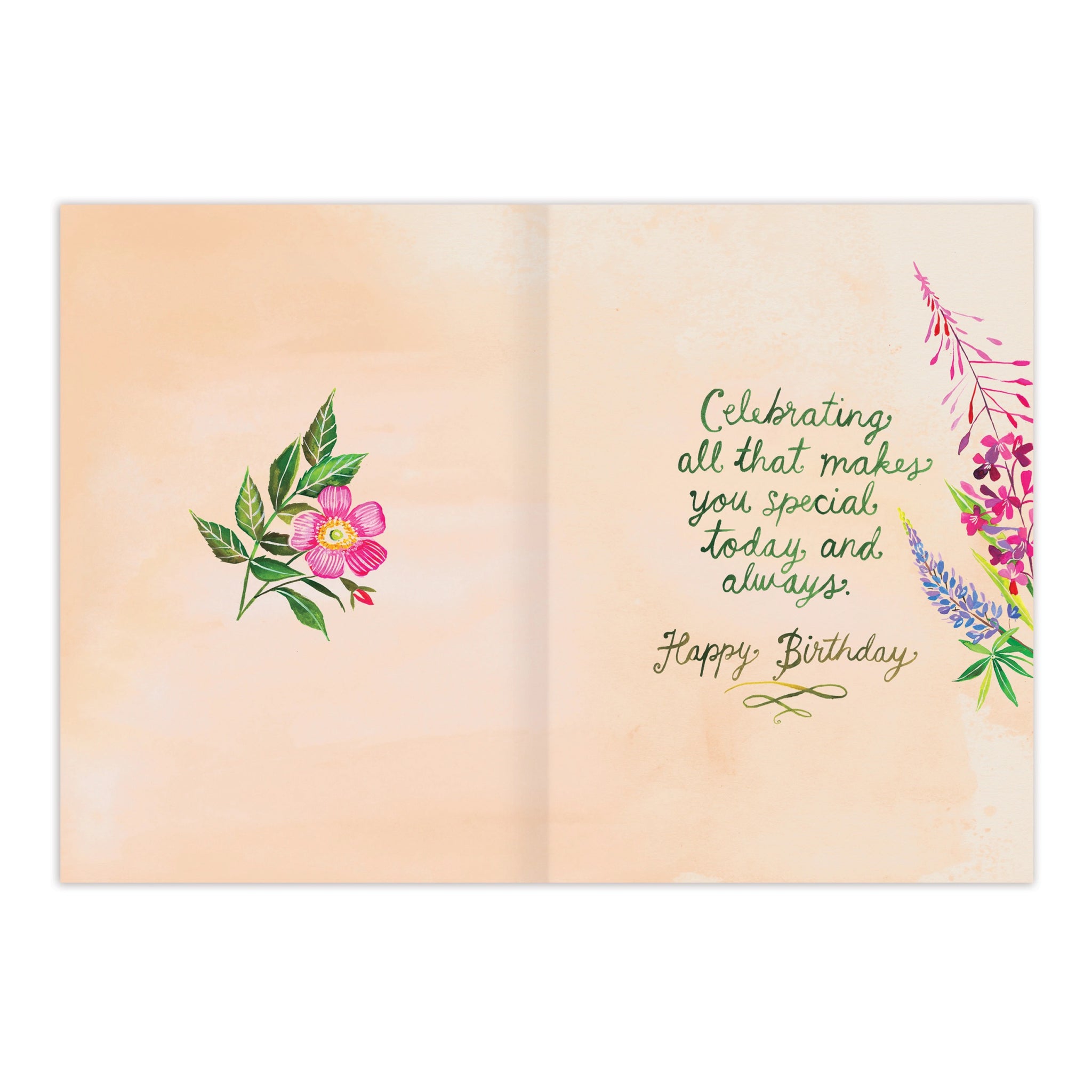 - Inside message: Celebrating all that makes you special today and always. Happy Birthday.
