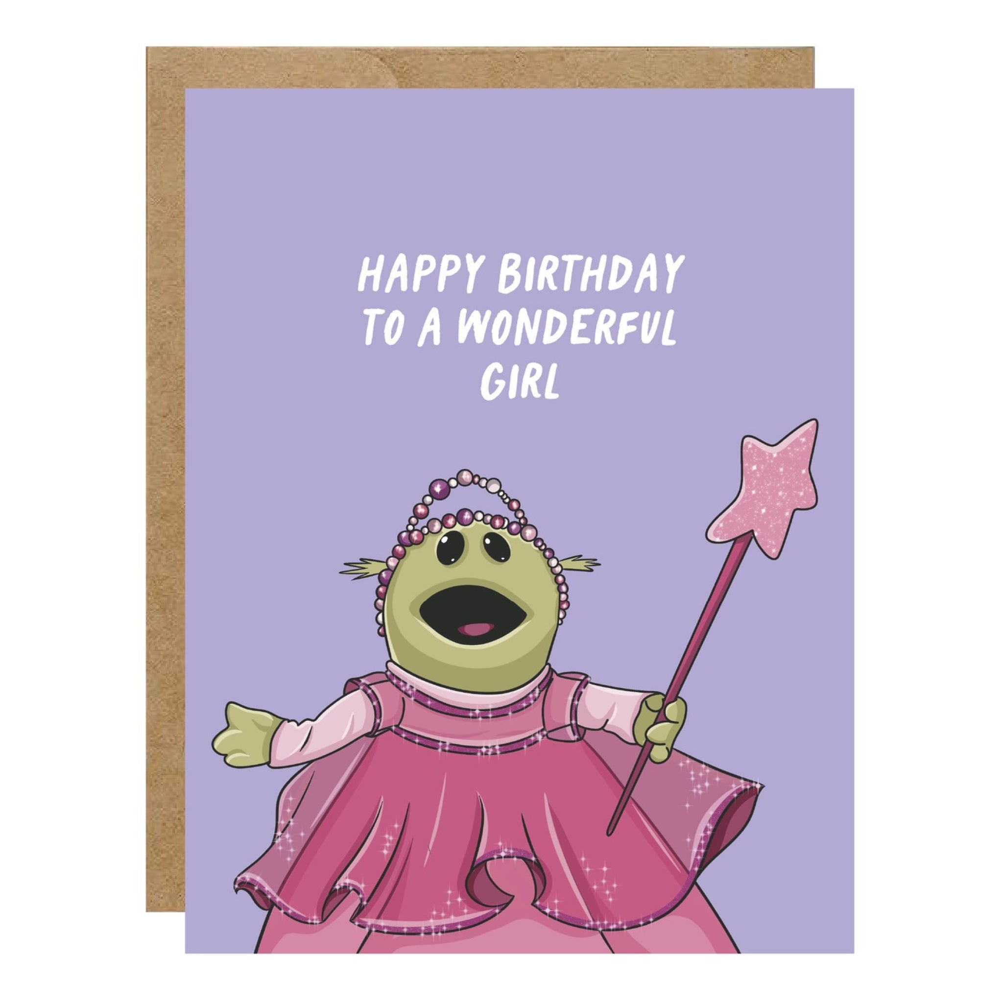 A sweet throwback birthday card for a truly wonderful girl. Blank inside, printed on white cardstock, and paired with a kraft envelope for your best wishes.