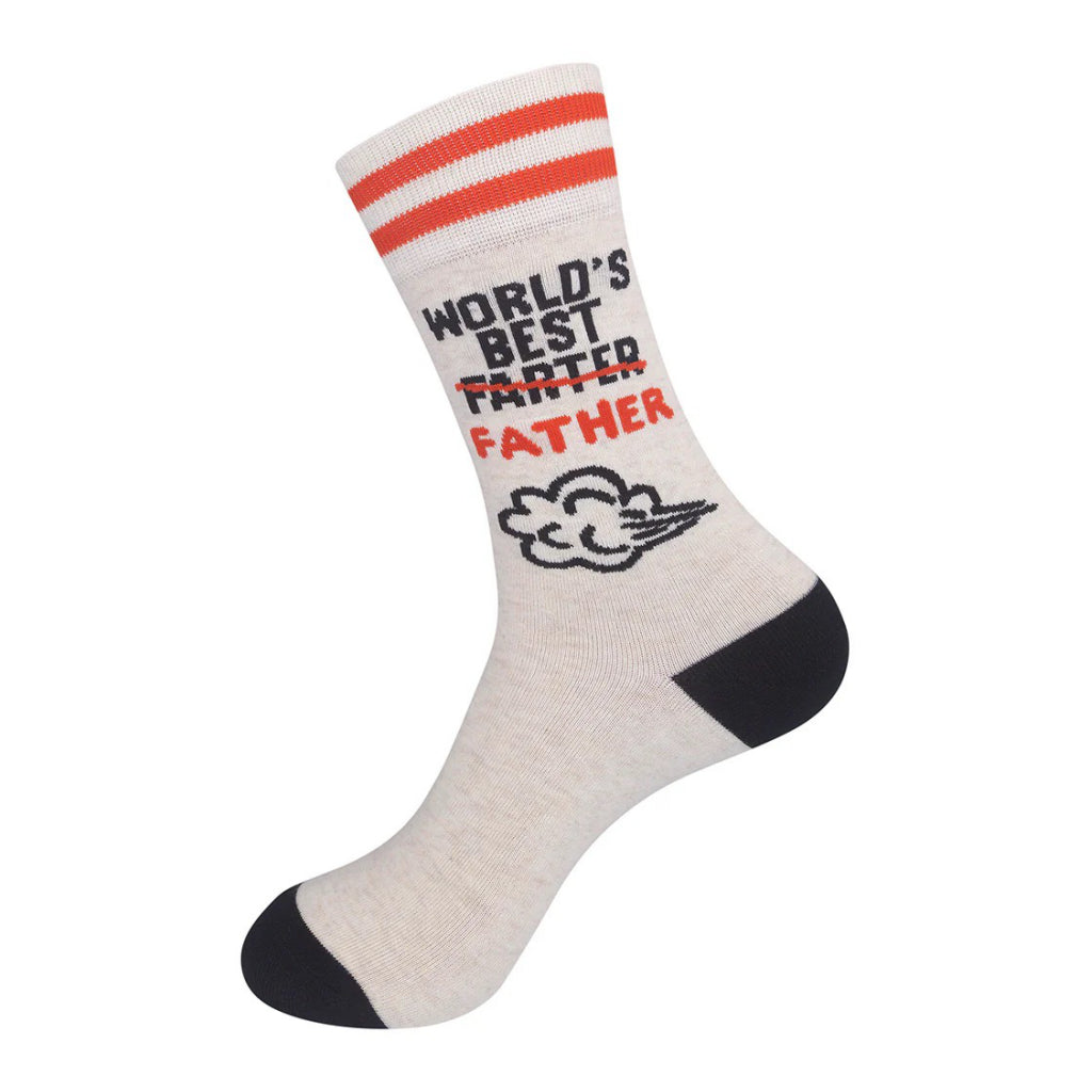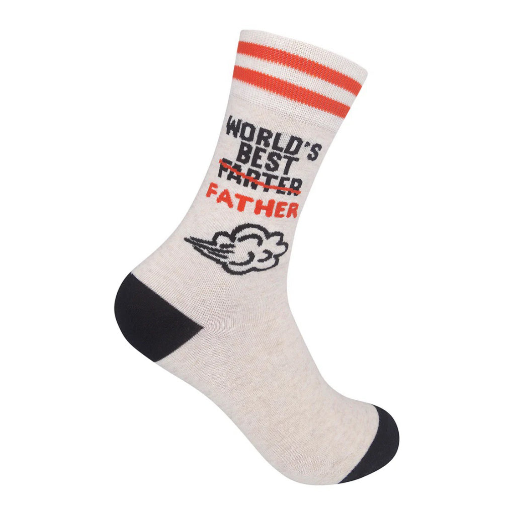 These novelty socks celebrate dad’s unique talents with the message “World’s best farter father” and a not-so-subtle little cloud.